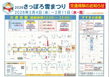 2月4日(水)~2月11日(水・祝)まで開催される「すすきのアイスワールド2026」における交通規制のお知らせです。 ご不便をおかけし申し訳ございませんがご協力をお願い致します。