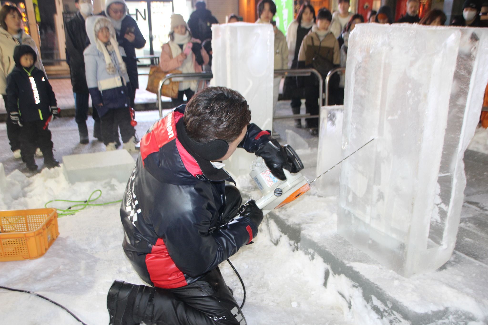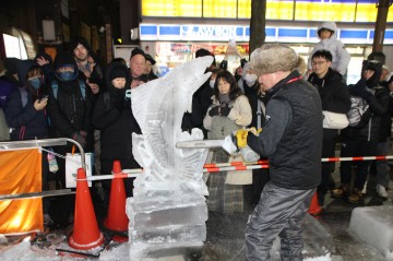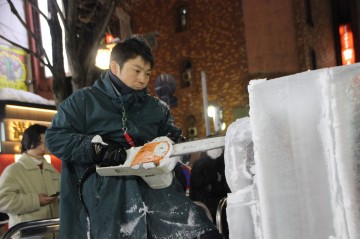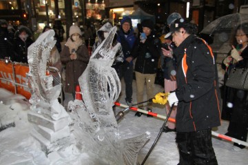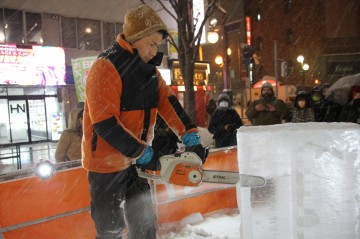 すすきのアイスワールド会場内Dブロックでは毎日19時~20時くらいまで氷彫刻アーティストによる実演をしています。(時間は多少前後する場合があります)
